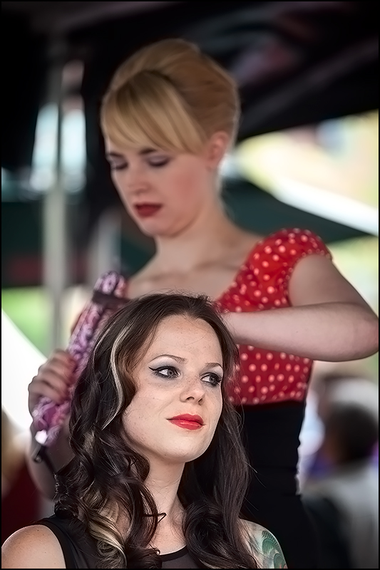 | Elk jaar wordt in Eindhoven de Rock ’n Roll Meeting georganiseerd. De bands die daar optreden zijn afkomstig uit Europa maar ook van verder weg, uit de Verenigde Staten bijvoorbeeld. Gemiddeld komen er zo’n 3.000 bezoekers. Vooral voor de muziek uiteraard, maar ook voor de jaren ’50 markt en de autoshow met klassiekers. Het festival is niet alleen een aanrader voor muziekliefhebbers, ook als je liever met een fototoestel op pad gaat kan je je er prima vermaken. Dankzij de prachtige kleding en coole kapsels van de artiesten én de bezoekers waanden we ons een paar uurtjes lang helemaal in de jaren ’50. (Klik op de foto’s voor een grotere versie!) |